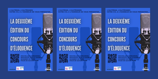 “Lyautéen, Lyautéenne Votre CVL a le plaisir de vous annoncer le lancement de la seconde édition du concours d’éloquence autour du thème « 100 ans de l’éducation ». En l’honneur de la 100e bougie de notre lycée, le concours d’éloquence s’élargit. En effet, le concours ouvre ses portes à l’ensemble des établissements …