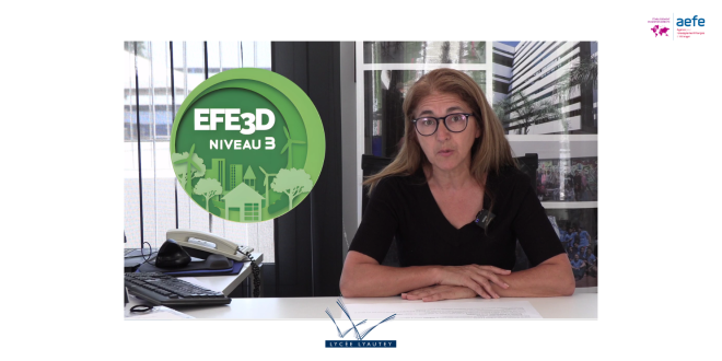 Lire la suite...En cette fin d’année scolaire, le lycée Lyautey a l’honneur d’annoncer l’obtention du niveau 3 de labellisation EFE3D, délivré par l’AEFE. Cette reconnaissance marque une étape majeure dans notre engagement en faveur du développement durable. La démarche EFE3D (Établissement Français à l’Étranger en Démarche de Développement Durable), portée par l’AEFE, …