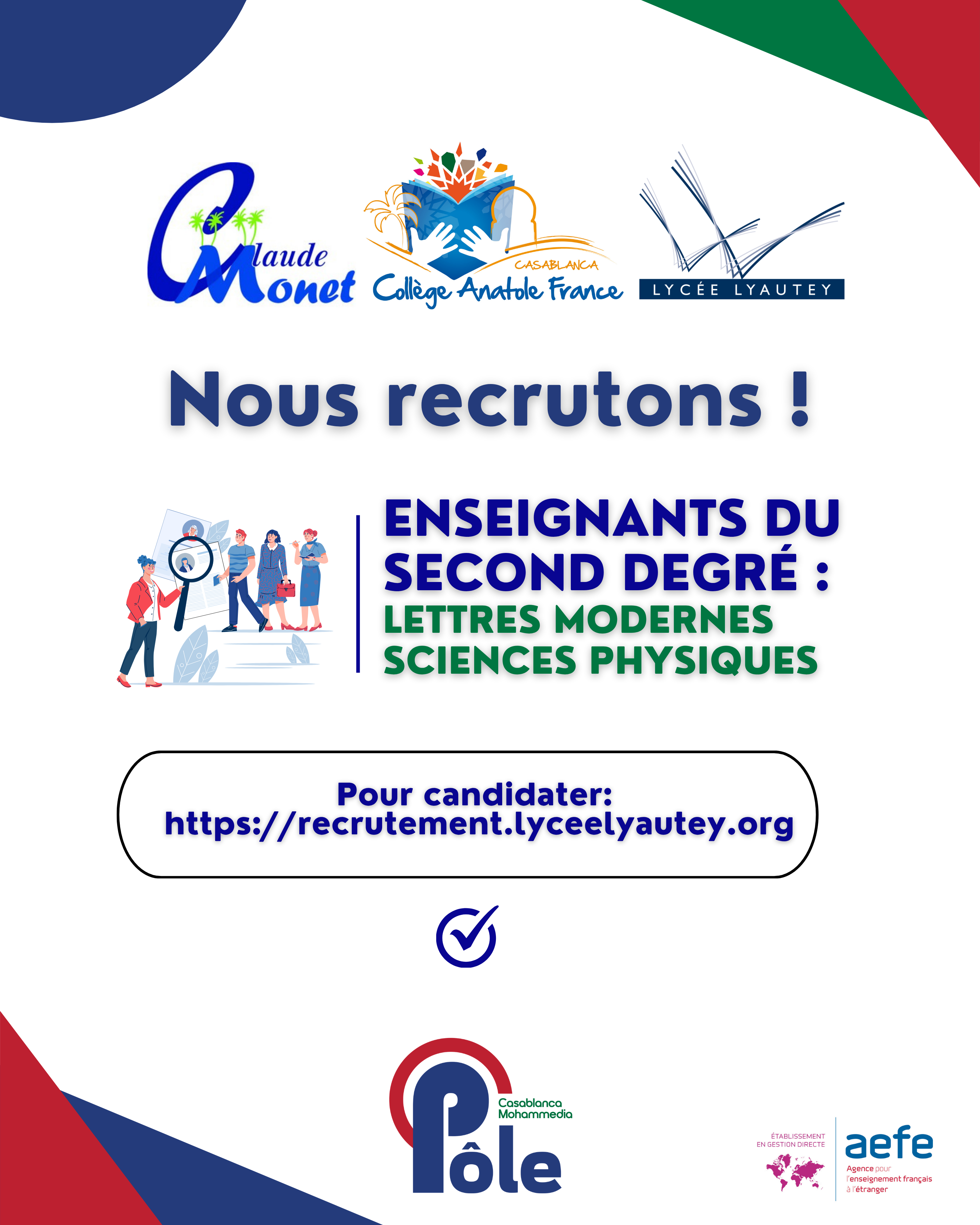 Nous recrutons : enseignants du second degré en LETTRES MODERNES et SCIENCES PHYSIQUES