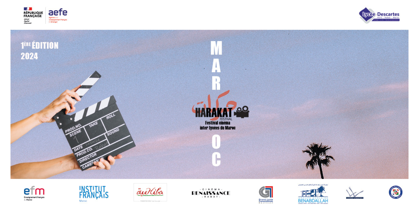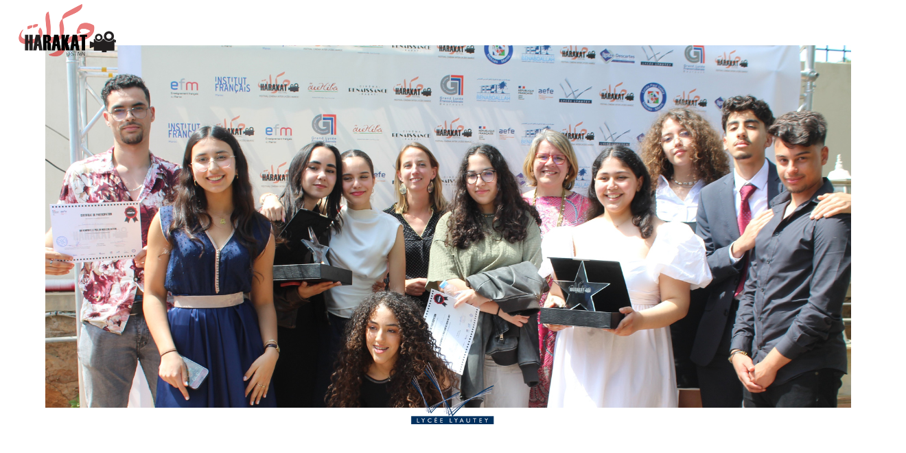 Le festival “Harakat”, festival inter-lycées de cinéma du Maroc, qui a eu lieu le mercredi 24 avril 2024 à Rabat a été un succès pour les élèves de l’option CAV du lycée Lyautey. Retour sur cette première édition placée sous les étoiles du 7ème Art.