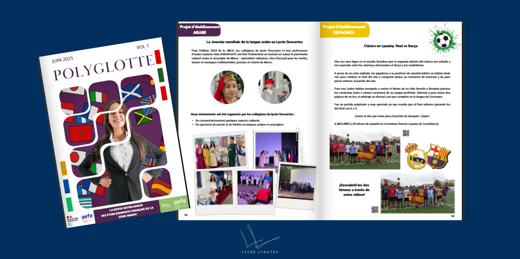 Nous avons le plaisir de vous partager via le lien suivant la revue Polygotte, première revue plurilingue de la zone Maroc, fruit du formidable travail réalisé dans les établissements du réseau, dont les élèves du lycée Lyautey.