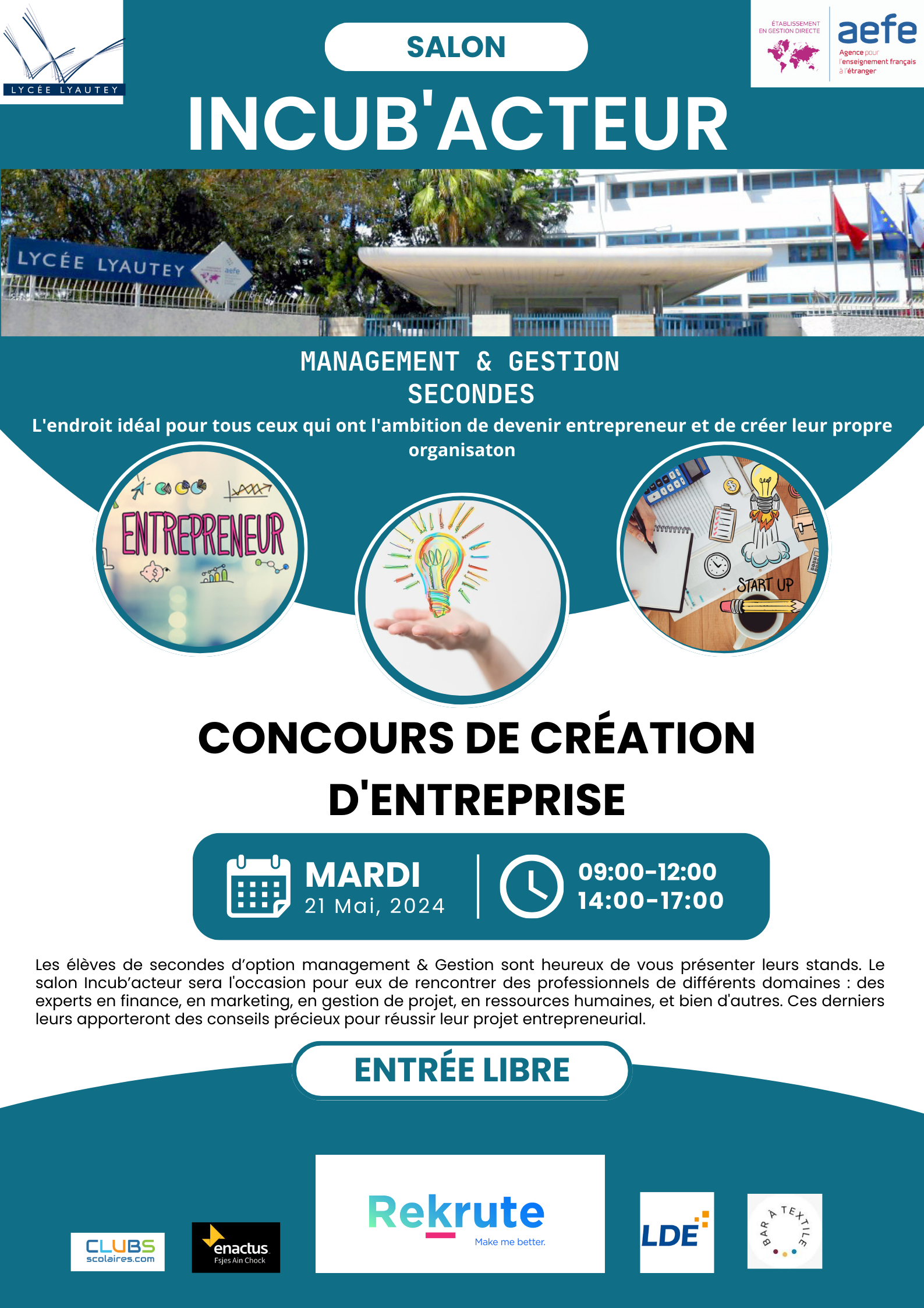 Dans le cadre de leur projet entrepreneurial, les élèves de seconde option management et gestion du lycée Lyautey présentent mardi 21 mai 2024, la nouvelle édition du « Salon Incub’Acteur » : une véritable expérience pour nos élèves !